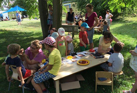 Am Freitag den 24.07.2015 fand in der Kinderkiste Ilvesheim die 10 jährige Jubiläumsfeier statt.Zu Beginn stimmten sich alle gemeinsam mit einem Lied auf den Nachmittag ein.