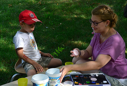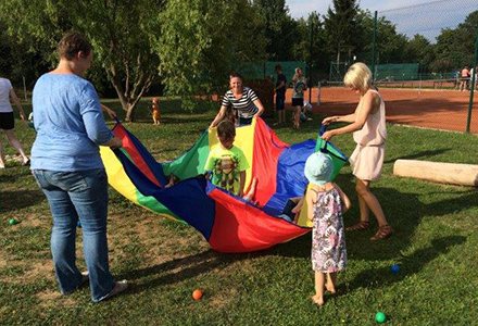 Als Attraktion auf dem Fest, konnten sich die Kinder schminken lassen, mit Glitzertattoo´s Arme und Beine verschönern, auf der Hüpfburg springen, oder mit dem geschenkten Schwungtuch die Bälle hoch fliegen lassen. Bei der Tombola freuten sich die Kinder über die selbstgebastelten Trommeln der Väter vom Papa-Abend.
